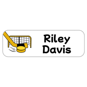 These stick-on hockey labels work great on hard, smooth surfaces like skates, helmets, sticks, water bottles, snack containers, duffle bags, notebooks, and hard-shell gloves. We even have [laundry-safe](https://www.namebubbles.com/collections/laundry-safe-labels) stickers to tag jerseys!